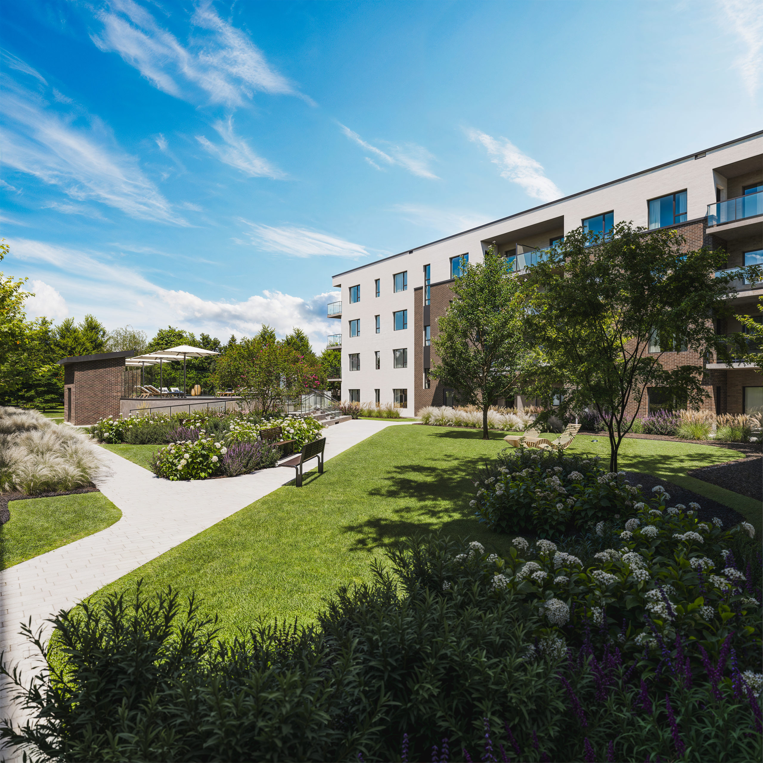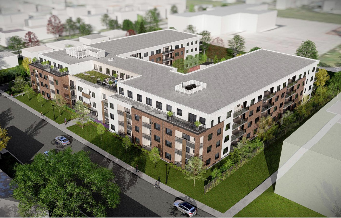 Les Terrasses d’Auteuil is a multi-residential rental project located at 645 Péladeau Street, in the heart of the Auteuil district in Laval. The project involves the construction of a four-storey building totaling 142 residential units, including studios as well as one-bedroom, two-bedroom, and three-bedroom apartments.